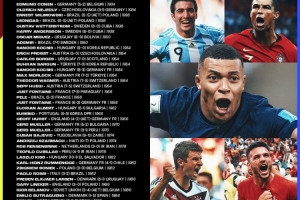 体育资讯4月18日讯 世界杯开幕倒计时54天,世界杯官方社媒盘点了赛事历史上的54次帽子戏法。